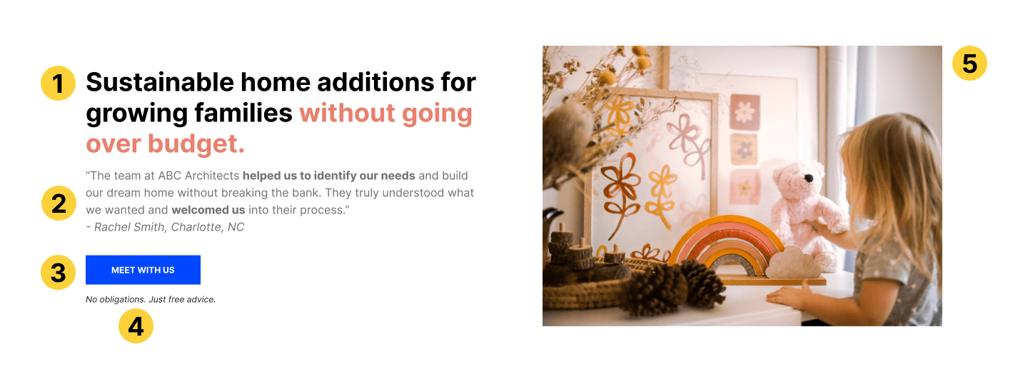 How does this make you feel? Imagine if you’re a “growing family” - this firm’s ideal client. Do you think they’ll feel like this is the right firm for them? Will they be interested in meeting with the firm about a home addition?