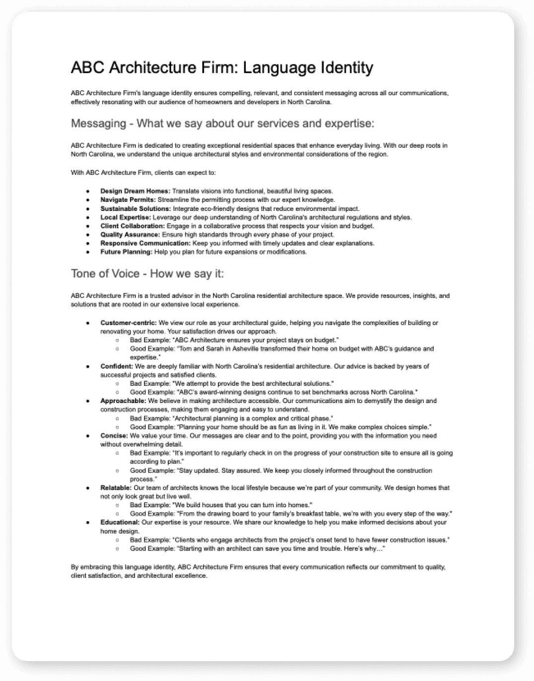 Developing a strong language identity is crucial, shaping how your firm presents itself and interacts with clients, contractors, and the broader community. Here’s how you do it: