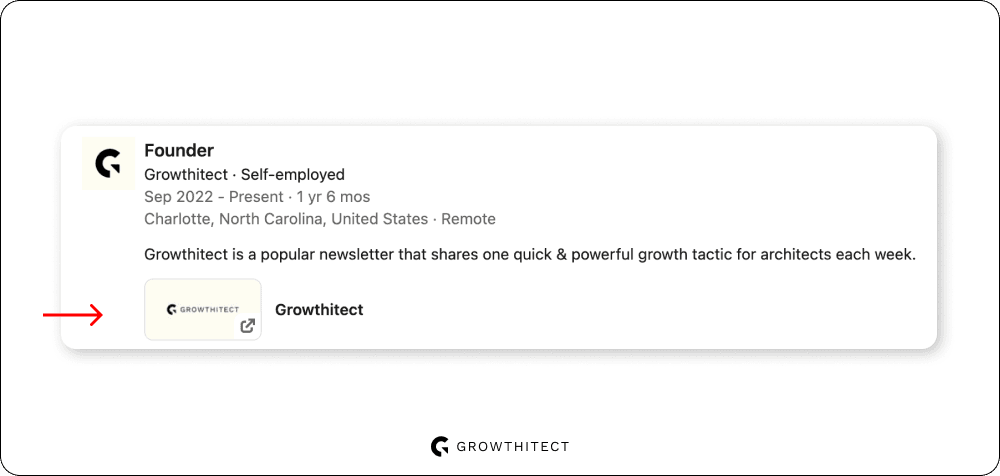 Now we’re moving down towards the bottom of your profile where you list your experience. Believe it or not, you can add a link here too! See: