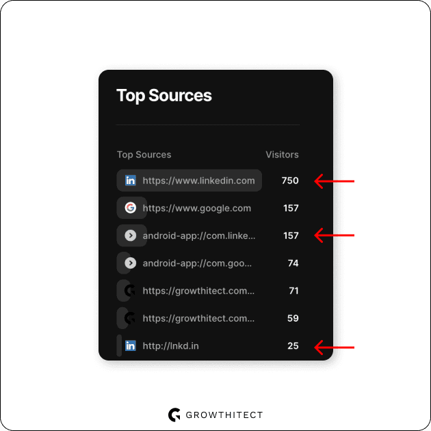 Don’t believe me? In the last 30 days, LinkedIn has been the top source of clicks to the Growthitect website — over 900 clicks!