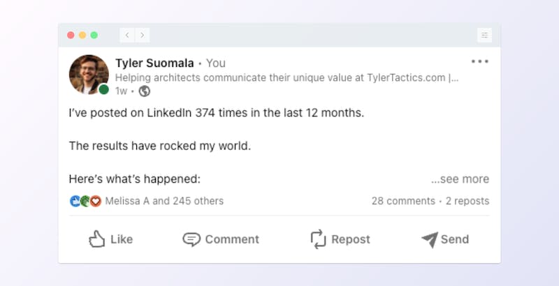 In particular, posting on LinkedIn has a massive upside. Only 1% of LinkedIn’s 250+ million users regularly post on the platform (read up on it here if you want).